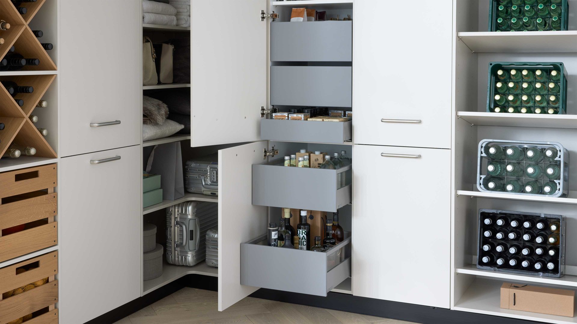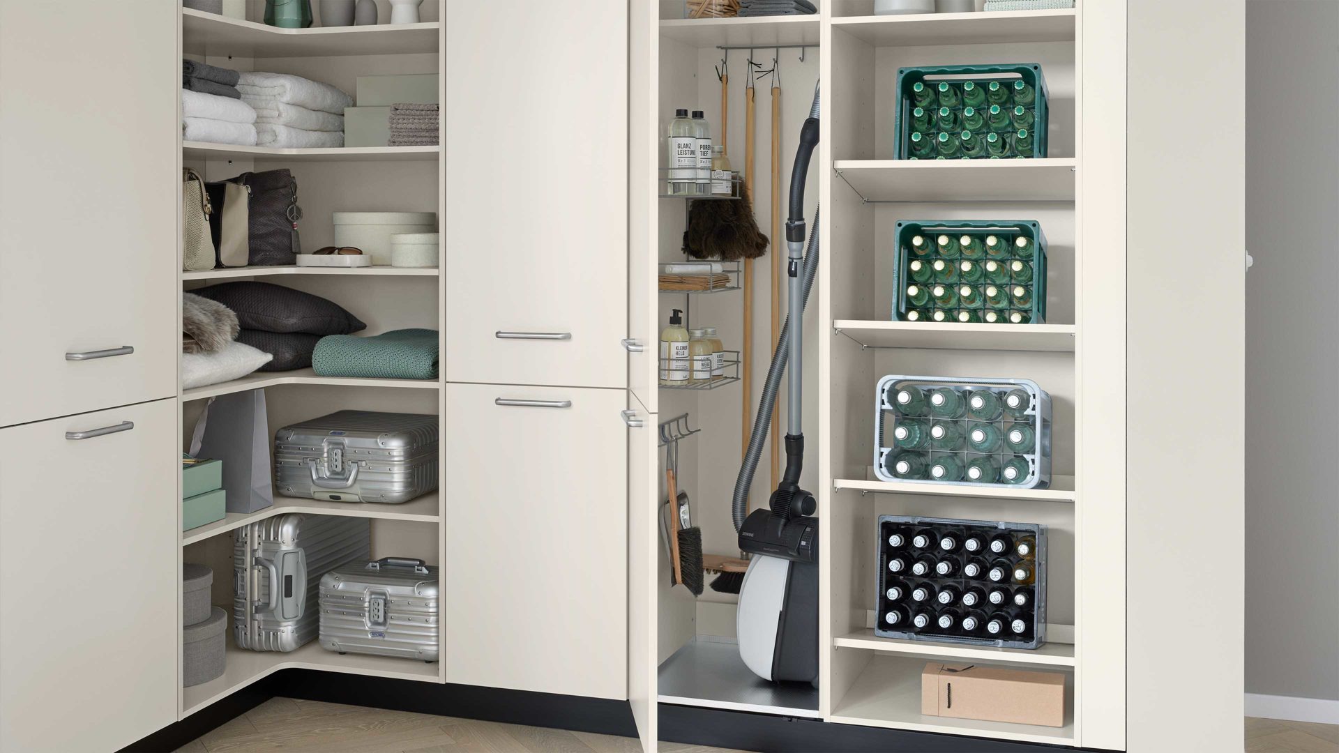 mit praktischen Innenauszügen und inklusive Zubehör im Besenschrank