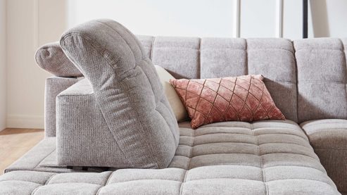 die Rückenlehne wird leicht nach oben und nach vorne gezogen, um die Sitztiefe von ca. 59 auf 79 cm zu verändern
