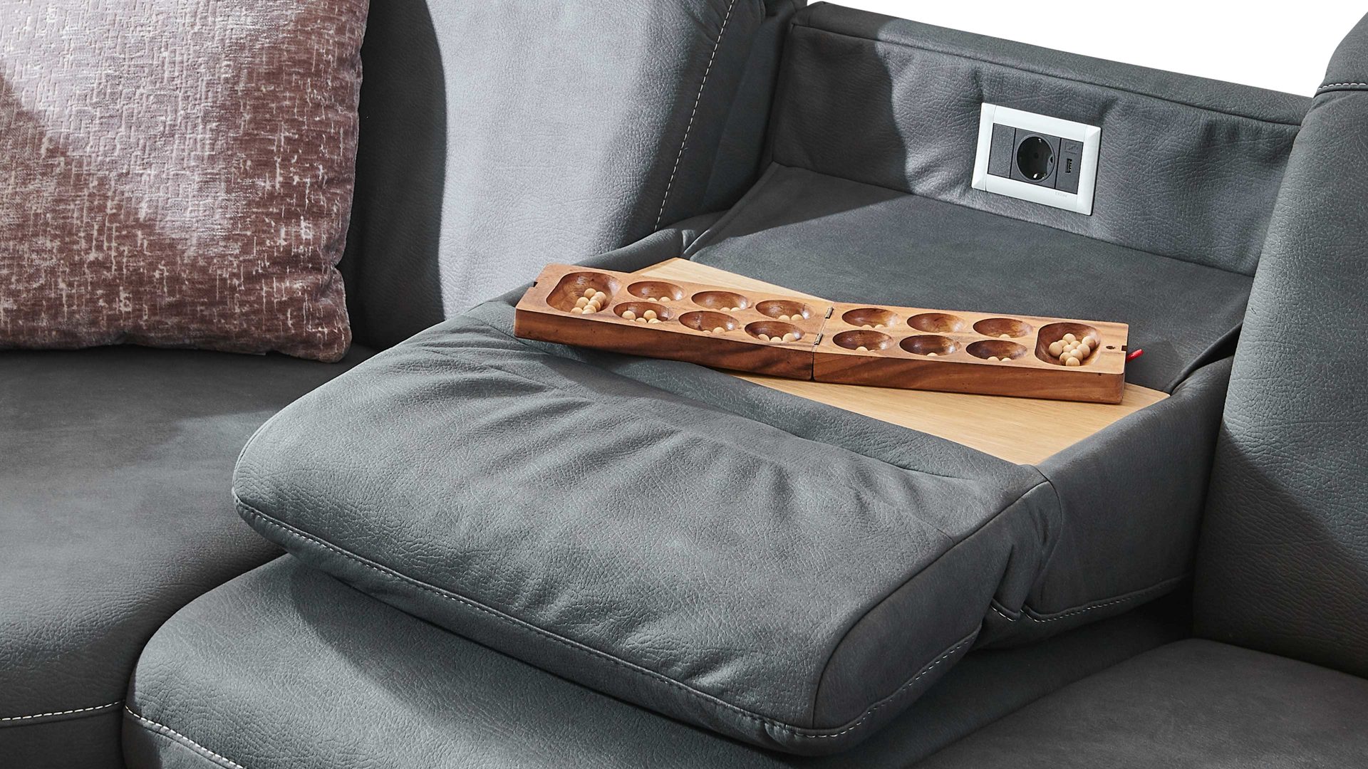durch Umklappen der Rückenlehne entsteht eine Ablagefläche